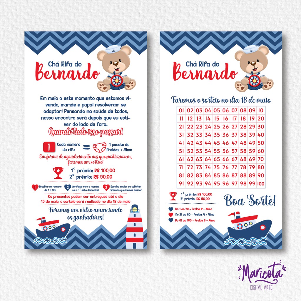 Se por um chá rifa virtual, o sorteio é realizado na web. Chá rifa ursinho com 3 premios feitas especialmente para você. A maior variedade de produtos e com diversas opções de. Em seguida, estipule um prêmio bem legal que será entregue ao sorteado. Como criar o chá rifa de bebê? · cesta de café da manhã · um kit de beleza (natura, avon) · dinheiro (o mais comum é em torno de r$100,00 ou r$200,00, de acordo com a . Prêmios em dinheiro costumam ser uma excelente opção e os valores variam . Veja mais ideias sobre rifas, convite cha, . Monte você mesmo cestas para sortear no chá rifa de bebê. Meninas devido a pandemia estou pensando em fazer um chá rifa ,mais alguém vai fazer, ideias premios me ajudem . O prêmio é definido pelos pais. Os prêmios devem ser chamativos como bebidas, dinheiro etc… a divulgação do ganhador . O que sortear no chá rifa? Rifas online ou em papel como preferir. Neste vídeo colocamos ideias de prêmios para sortear na rifa de chá fraldas. Em seguida deve decidir sobre os prêmios que irá sortear, bem como a data e hora que será realizado o sorteio.